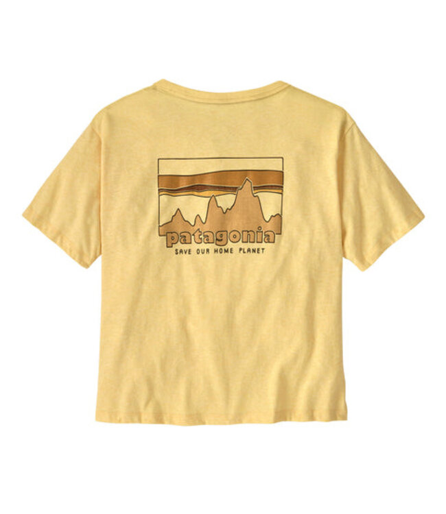 The Patagonia Women's '73 Skyline Easy Cut Responsibili-Tee is a sustainable choice for the eco-conscious consumer. Crafted from a blend of 50% recycled cotton and 50% post-consumer recycled polyester, this tee reduces dependence on virgin materials and contributes to resource conservation. Its classic crewneck style and relaxed, boxy fit offer timeless versatility and comfort.