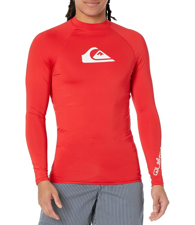 The Quiksilver Men's All Time Long Sleeve Rashguard offers exceptional UPF 50 sun protection, making it a perfect choice for water sports enthusiasts. Its durable fabric shields the skin from harmful UV rays while maintaining comfort and flexibility for activities like surfing, snorkeling, and sailing.