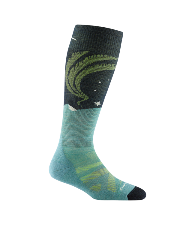 The Women's Aurora Cushion Ski & Snowboard Socks by Darn Tough are expertly designed for performance and comfort. Crafted with Merino wool, these socks offer a perfect blend of warmth and moisture-wicking properties, ensuring your feet stay dry and cozy on the slopes. The True Seamlessâ„¢ Toe technology provides a smooth and undetectable feel, enhancing comfort during long sessions in ski boots.
