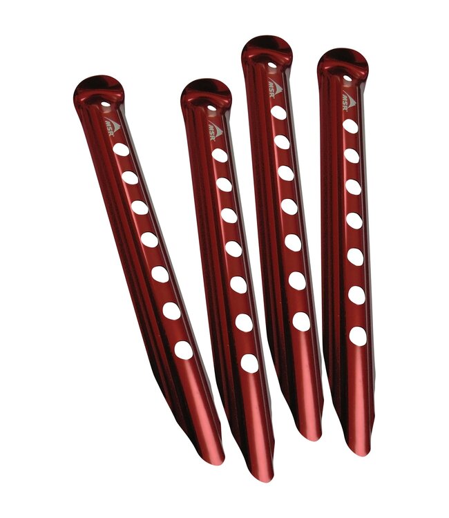 The MSR Blizzard Tent Stakes are designed for stability and durability in sand and snow, making them a reliable choice for winter camping and beach trips. These stakes are crafted from lightweight aluminum, ensuring they are both strong and easy to carry.