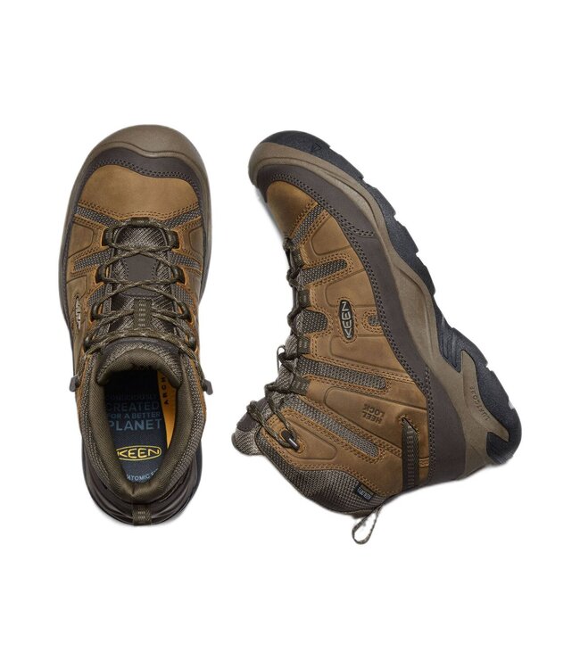 The KEEN® Men's Circadia Mid Waterproof Boot is your reliable companion for any outdoor adventure. This boot is crafted from premium leather and features a waterproof and breathable membrane, ensuring your feet stay dry and comfortable in varying weather conditions. The cushioned footbed and midsole offer exceptional support, while the durable rubber outsole provides superior traction on challenging terrains.