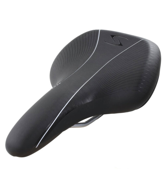 The Serfas CB-100 City Bike Saddle with Vinyl Cover is designed for urban cyclists seeking comfort and functionality. This saddle features a Dual Density® Base, enhancing rider comfort during commutes or leisurely rides. Its built-in rear saddle rail handle offers a convenient way to secure a cable lock, adding utility for city biking.