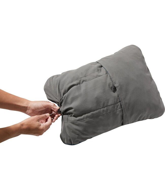 The Compressible Pillow Cinch by Therm-a-Rest is designed for travelers and campers who prioritize comfort and convenience. This pillow, made with upcycled foam from sleeping pad production, offers eco-friendly support and can be easily packed down into itself for space-saving travel.