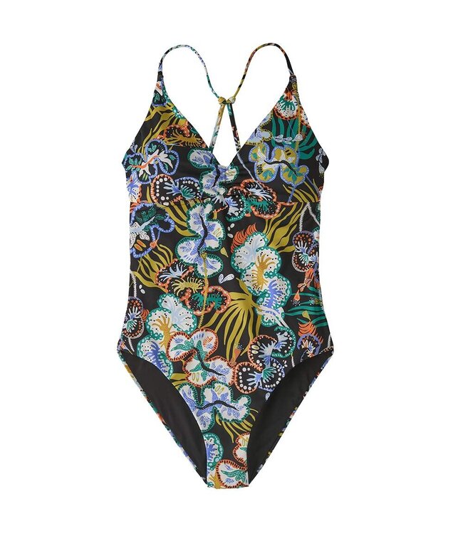Experience the perfect blend of comfort and style with the Patagonia Cross Shore 1pc Swimsuit. Crafted from a soft, quick-drying, and stretchy material, this one-piece swimsuit is designed to enhance your summer days at the beach or by the pool. Its V-neck cut and intriguing back design provide both comfort and a flattering look.