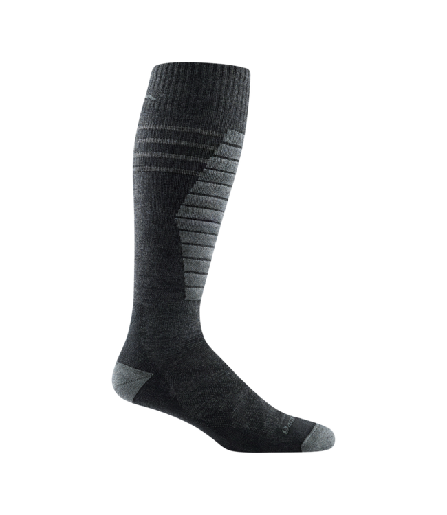 The Men's Edge Over-the-Calf Midweight Ski & Snowboard Socks from Darn Tough are designed to provide optimal comfort and performance for skiers and snowboarders. These socks feature extra cushioning and mesh panels that enhance airflow and reduce moisture, ensuring your feet stay warm and dry throughout your runs.