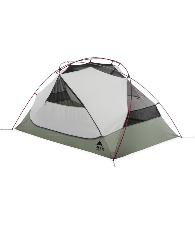 The MSR Elixir 2 is a two-person tent designed for backpackers seeking a balance of livability and performance. Its true rectangular floorplan and unique pole geometry offer ample headroom, while the mix of mesh and solid fabric panels provides excellent ventilation and privacy. The tent is built to withstand various weather conditions with its durable 7000-series aluminum poles and a weatherproof rainfly featuring StayDryâ„¢ doors and built-in rain gutters.