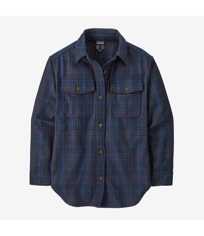 The W's Fjord Loft Overshirt Jacket by Patagonia is an evolution of the popular Fjord Flannel. Crafted from thick, tightly woven 100% organic cotton, this jacket offers long-lasting warmth and comfort with a classic fit. Ideal for cooler temperatures, it features a button closure, chest pockets, and a rounded hem.