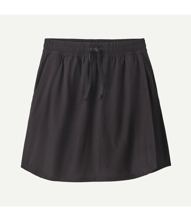 The Patagonia Fleetwith Skort in black is designed for active women seeking comfort and mobility. Ideal for summertime activities like bike commuting, this skort is made from a stretchy blend of 89% recycled polyester and 11% spandex. It features a contoured, saddle-shaped hemline for added comfort, along with an elastic waistband with an exterior drawcord to ensure the perfect fit.