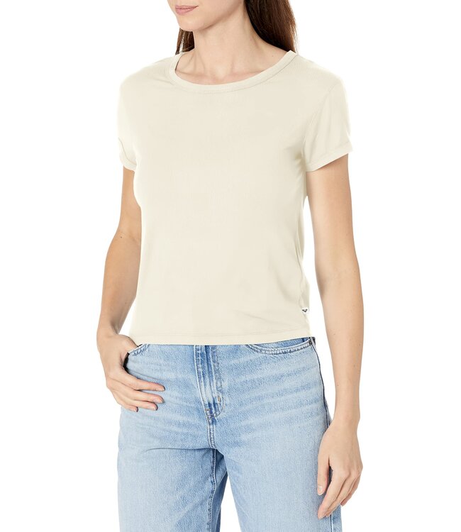 The Roxy Women's Frozen Night Short Sleeve T-Shirt offers style and comfort in a classic design. Made from a blend of baby rib viscose and elastane, this fitted tee ensures a flattering fit and a soft feel against the skin.