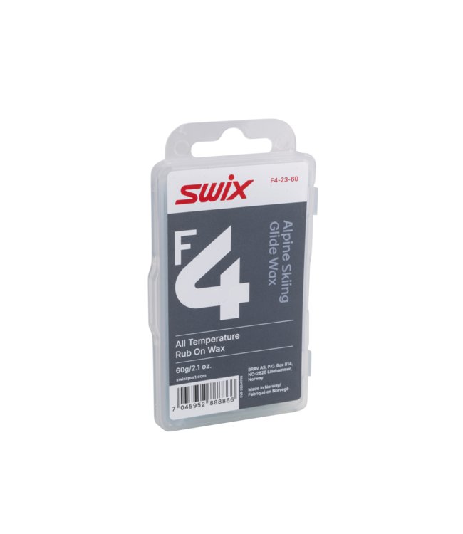 The Swix F4 Glidewax Rub-on with cork is a versatile and easy-to-apply glide wax that works efficiently across all temperature ranges. This universal wax is fluoro-free, making it an environmentally friendly choice for skiers looking for optimal performance without compromising the environment.