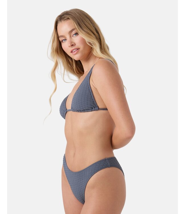 The Haleiwa Built Up Triangle Bikini Top by Roxy offers a stylish and comfortable option for your beachwear collection. Crafted from recycled stretch fabric, this bikini top combines ecological responsibility with fashion-forward design. Its bright white, textured finish ensures you stand out whether you're soaking up the sun or enjoying a sunset hang.