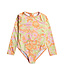 The Roxy Happiness Feeling One Piece is a stylish and eco-friendly swimsuit designed for those who love vibrant colors and floral patterns. Made from recycled polyester fabric, this long-sleeve one-piece is not only soft and stretchy but also offers excellent chlorine resistance, making it perfect for poolside adventures.