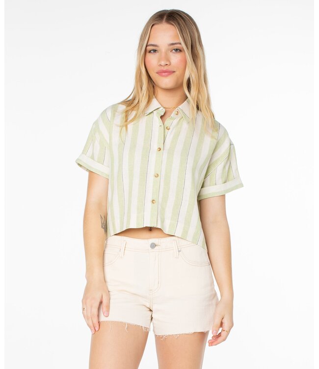 The Kula Camp Shirt by Roxy is a stylish and comfortable addition to your wardrobe, perfect for casual outings or relaxed days at the beach. This shirt features a tarragon horizon stripe design that complements its laid-back aesthetic.