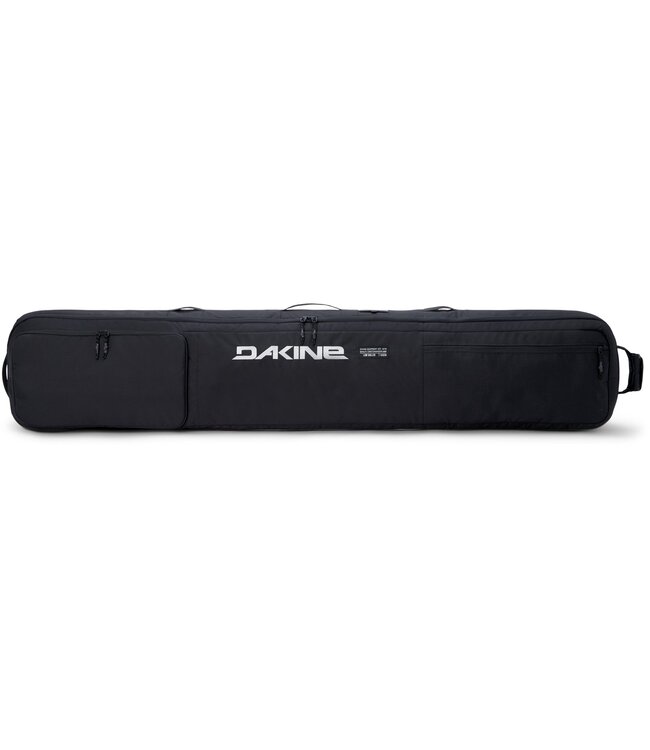 The Dakine Low Roller Snowboard Bag in black is designed for snowboarders who value durability and organization. This bag can accommodate two snowboards, with one having bindings mounted, along with a pair of boots and outerwear. Its 360° padded and tarp-lined interior ensures your gear remains protected during transit.