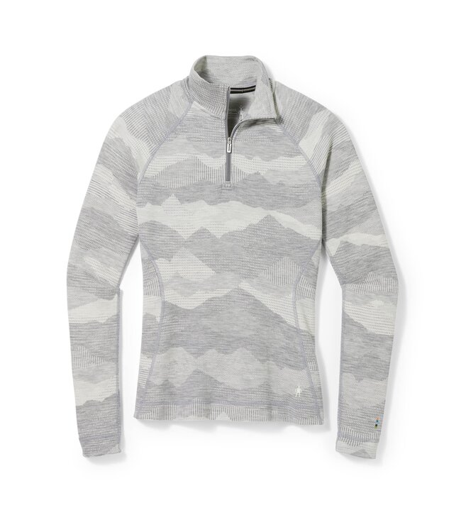 The Smartwool Women's Classic Thermal Merino Base Layer 1/4 Zip is a versatile and essential piece for outdoor enthusiasts. Made from 100% Merino Wool, this base layer provides exceptional warmth and comfort, making it ideal for a variety of activities in cooler weather. The light gray mountain scape design adds a touch of style to this functional piece.