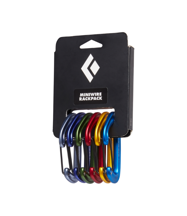 Engineered for the light and fast climber that’s counting every gram, the MiniWire Rackpack features six of the lightest, fully-functional carabiners in the Black Diamond line-up. Each carabiner is color-coded to match our Camalots for easy identification while racking. Perfect for minimizing weight on long trad or alpine routes, the MiniWire is durable, with a modern design, featuring a hot-forged lightweight construction, and an optimized nose geometry for easy clipping/unclipping. Go big, go MiniWire.