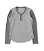 This henley shirt features a deep curved hem for added flair and a heat transfer back neck label for comfort. Available in the color Stone, this versatile piece can be dressed up or down for any occasion.