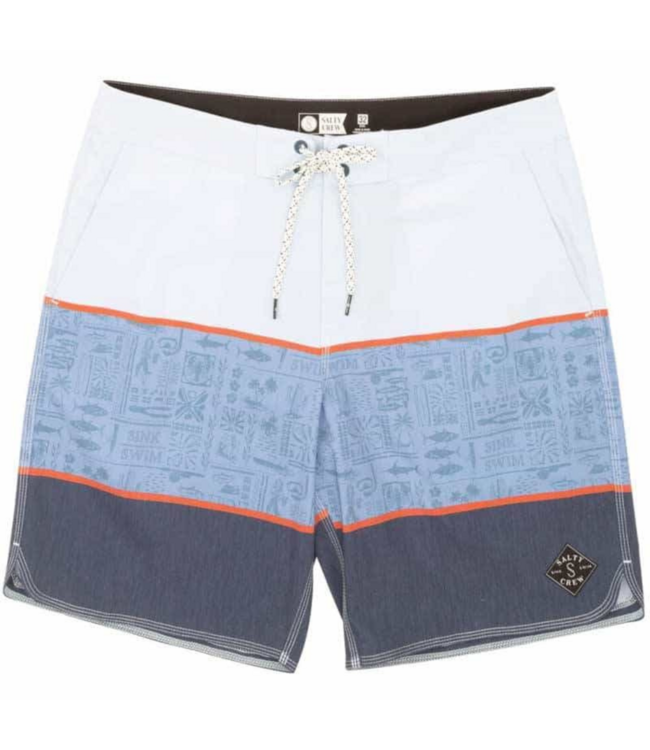 The Salty Crew Overboard Board Shorts in blue are designed for both comfort and style, making them perfect for surfing or casual beach days. Made with high-quality materials, these board shorts offer durability and flexibility for active wearers.