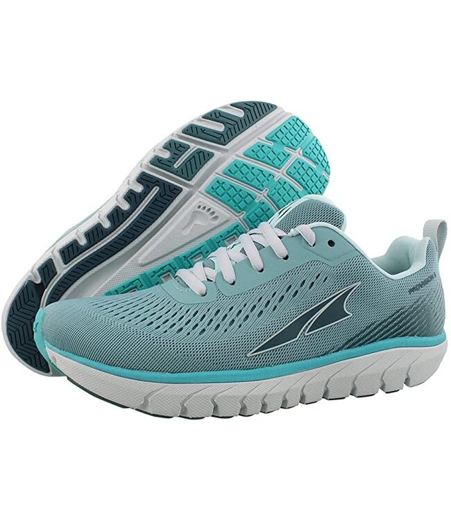 The ALTRA Women's Provision 5 Running Shoes in Teal/Green are designed for runners seeking a combination of support and natural foot movement. The innovative GuideRail system offers additional medial support precisely when needed, allowing for a more natural stride. With a contoured insole that engages with the nerves of your feet, these shoes provide a seamless fit and feel.