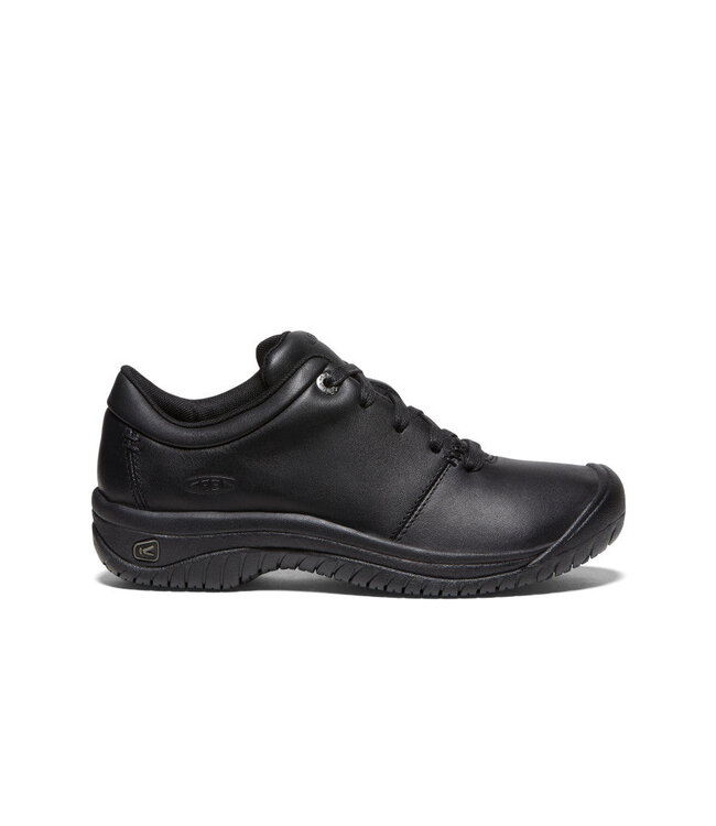 The Women's PTC Oxford in Black by Keen Footwear is a perfect blend of sustainability and style. Crafted with eco-friendly materials, these shoes feature webbing made from recycled plastic bottles and outsoles constructed from agricultural waste, ensuring a reduced environmental impact. Keen's commitment to sustainability extends to the removal of harmful chemicals, with all products being PFAS free since 2018.