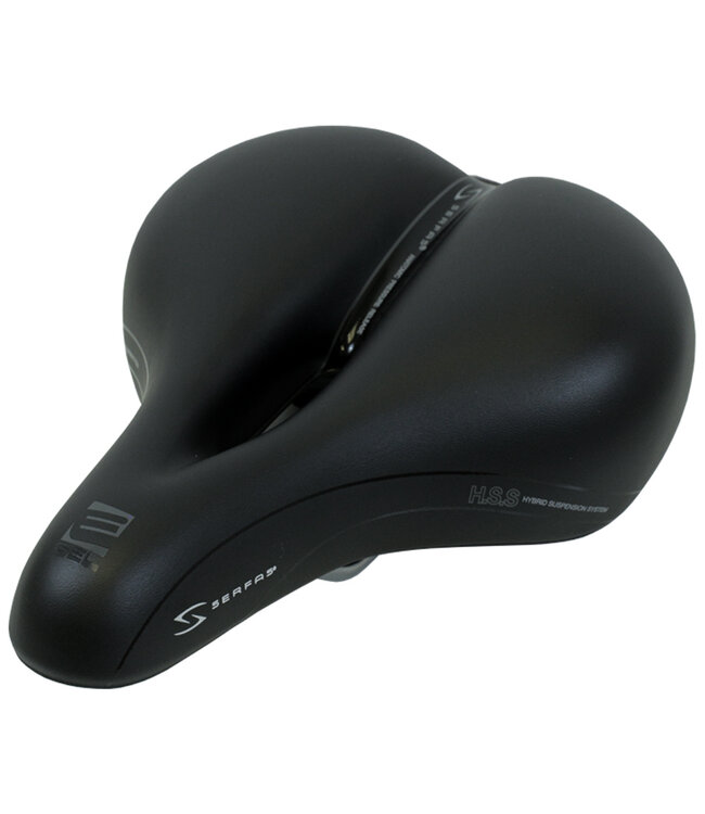 The Serfas E-Gel Hybrid Elastomer Saddle is designed for riders seeking comfort and durability. Featuring a waterproof Soflex cover, this saddle ensures weather resistance and longevity. Its friction-free gel layer reduces friction by moving with the rider, enhancing the riding experience.
