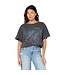 With its cropped, boxy silhouette and dropped dolman sleeves, this T-shirt offers a comfortable fit that complements any laid-back look. Perfect for those seeking a balance between fashion and comfort, this tee is a versatile addition to any closet.