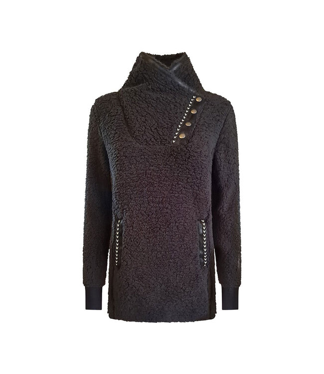 Features a fashionable shawl collar with functional snaps for adjustable style and warmth