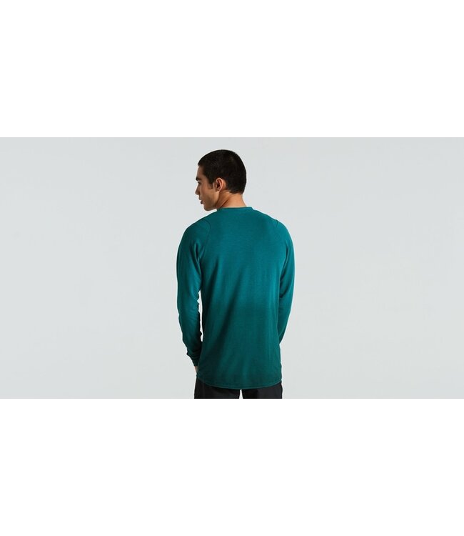 The Specialized Men's Trail Long Sleeve Jersey in Tropical Teal Spray is designed for mountain biking enthusiasts seeking comfort and style on the trails. Its relaxed fit and crew neck collar ensure a casual yet comfortable riding experience.