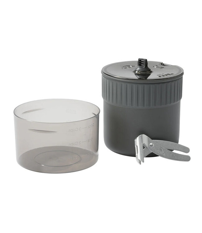 Weighing just 10.2 ounces, the Trail Mini Duo is crafted from durable hard-anodized aluminum, making it both lightweight and strong. The versatile pot serves as an eating and drinking vessel with its insulated grip, while the lid doubles as a strainer. The set includes a 1.2 L pot, a 28 oz. bowl, a clear lid with straining ports, an ultralight mini pot lifter, and a stuff sack.