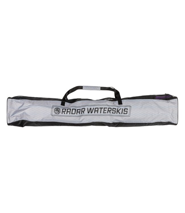This case is tailored to fit a full slalom setup while accommodating boots and accessories, making organization and transport effortless. The dual carry handles provide comfort and convenience, while the sleek black and grey finish offers a professional look that matches the Radar travel gear lineup.