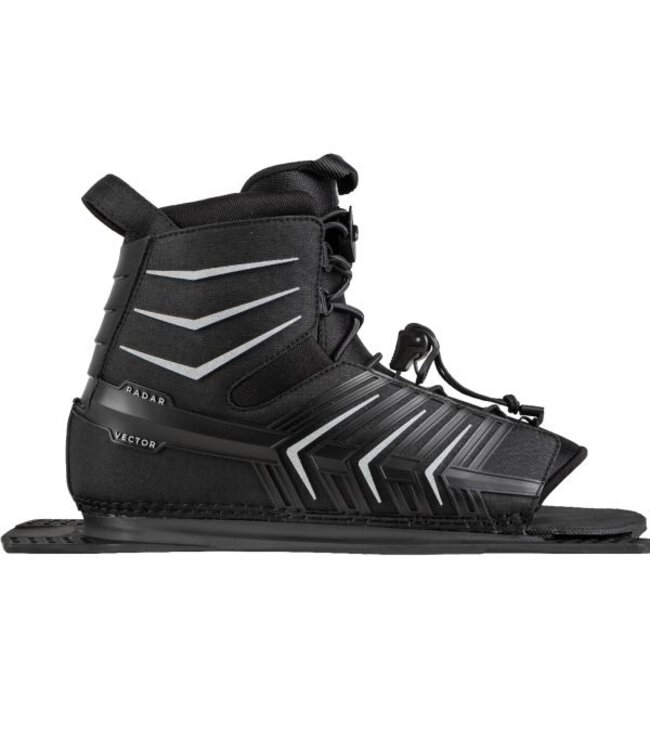 The Radar T.R.A. Kids #2026 Waterski Boot offers young skiers the same high-performance features found in adult models, ensuring a comfortable and controlled experience on the water. Built on the innovative Feather Frame Chassis, this boot provides seamless integration of the mounting system, baseplate, and outer shell for an exceptional connection to the ski.