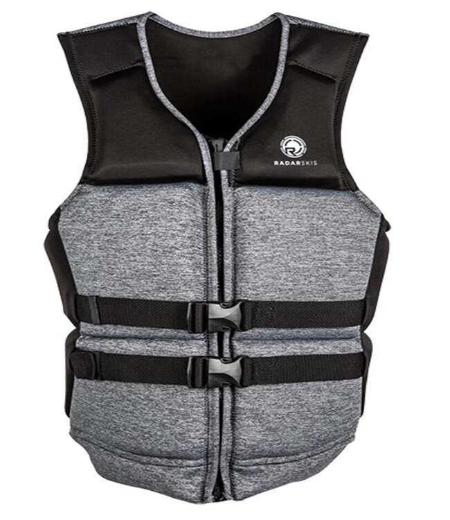 The Radar X 3.0 CGA Life Vest in Heather Grey and Black is designed to set a new standard in life vest comfort and performance. Featuring advanced technology such as tapered foam and smart segmentation, this vest ensures mobility and buoyancy for water sports enthusiasts. Crafted with lightweight Zote Foam and a water-resistant liner, it dries quickly for repeated use, making it an ideal choice for skiing and other water activities.